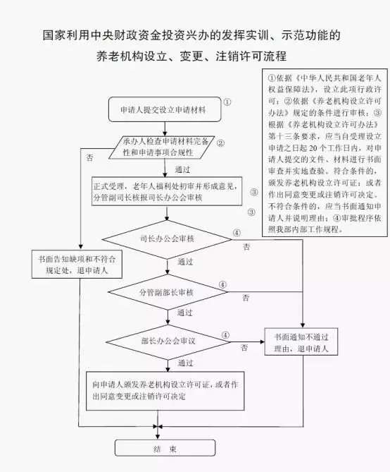 《中華人民共和國老年人權益保障法》第四十四條:“ 設立養老機構應當向縣級以上人民政府民政部門申請行政許可;經許可的,依法辦理相應的登記。設立經營性養老機構應當在工商行政管理部門辦理登記后,向縣級以上人民政府民政部門申請行政許可。縣級以上人民政府民政部門負責養老機構的指導、監督和管理,其他有關部門依照職責分工對養老機構實施監督。”